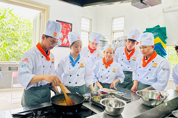 - Chương trình học được xây dựng dựa vào thực tế vận hành tại bếp ăn của các trường học, bệnh viện, xí nghiệp, suất ăn công nghiệp… sẽ giúp bạn tự tin hơn khi bước vào môi trường làm việc thực tế sau khi tốt nghiệp.
