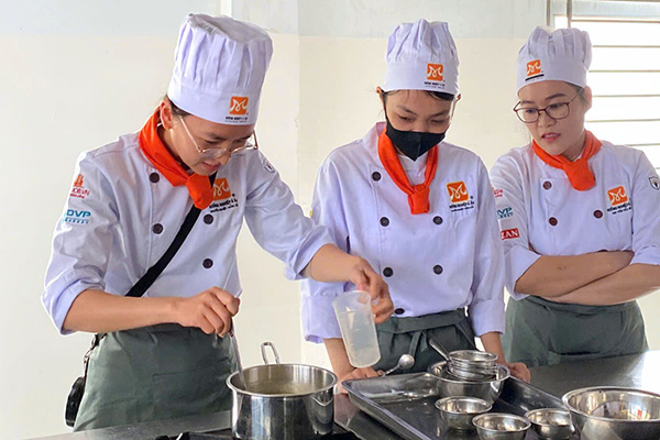 - Trong suốt quá trình học, bạn được đào tạo theo quy trình bếp mở, tạo dựng thói quen tuân thủ quy trình và tiêu chuẩn của bếp ăn tập thể.